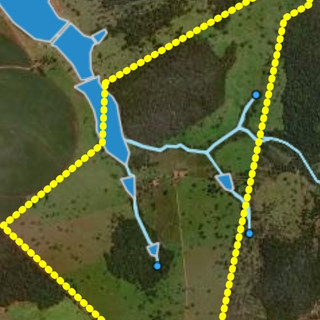 Área Total: 52.5 Alq. (Goiano) (253 ha) Área Aberta: 39.5 Alq. (190 ha) Área Nativa, APP'S e Reserva: 13 Alq. (63 ha) Área p/ Plantio: 30 Alq. (145 ha) Área em Pastagens: 38.5 Alq. (186 ha) Tipo de Pastagens: Brachiaria e Mombaça Divisões de Pastos: